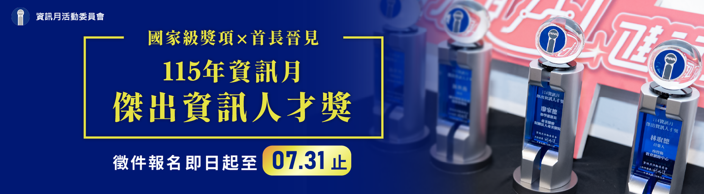 作為全民共享的科技盛會,資訊月透過「智慧國家展區」高度對接「AI 新十大建設」藍圖。我們將抽象的政策轉化為具體的數位應用,更彰顯政府與產官學界如何攜手合作,將 AI 能量注入百工百業,落實全民智慧生活圈。 11/12(四)-11/15(日)誠摯邀請您走入展場。 ❚ 2026年度策展規劃: (link) ❚ 立即參展報名: (link) ❚ 邀請展示主題: #數位轉型 #AI人才培育 #數位治理 #科技文化藝術推廣 #中央數位政策展示 #淨零科技與綠能永續發展 #新世代打詐 #百工百業智慧應用 #更多政府/地方數位成果 #政府計畫成果執行 ❚ 持續提供: 凡具公務人員身分者,可事先至公務人員終身學習入口網站( https://lifelonglearn.dgpa.gov.tw/ )搜尋「資訊月暨臺灣教育科技展【智慧國家】參訪」並完成報名登錄。展期內實際參觀本展覽者,將提供公務人員終身研習時數3小時。 ❚ 去年亮眼成果請見: https://reurl.cc/grQv2X 展覽資訊 2026資訊月暨臺灣教育科技展 日期:11/12(四